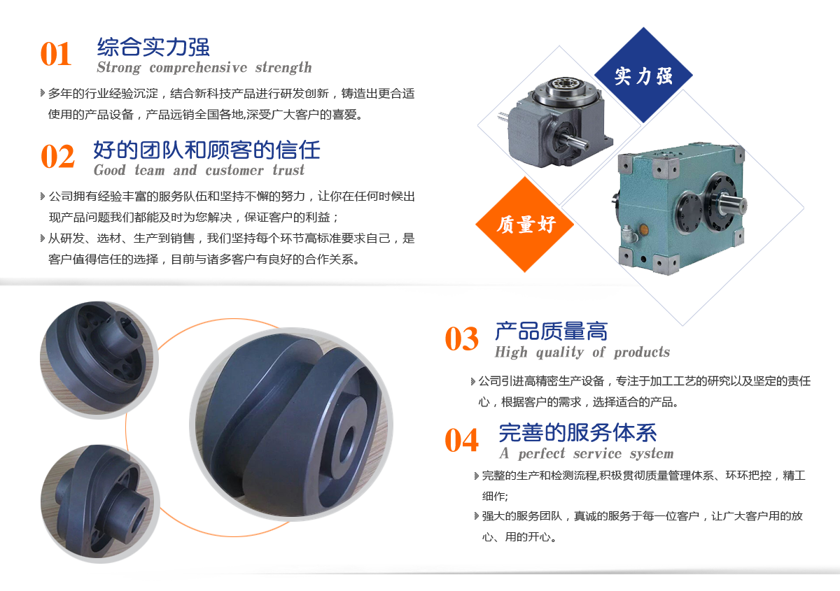 高速精密凸輪分割器是實現間歇運轉的分度機構。該產品具有分度精密高,高速性能好,運轉平穩、傳遞扭矩大、定位自鎖、結構緊湊、體積小、噪音低、壽命長等顯著優點。產品廣泛應用于各種組合機械、食品包裝機械、灌裝成型機械、玻璃陶瓷機械、燈泡機械、制造裝配自動生產線等機械行業中,并已獲得了使用者的信任與好評。......